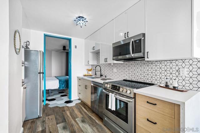 WILL NOT LAST! Your oasis at the beach awaits! This newly beautiful remodeled condo enjoy an oversized Balcony with open views! Perfect for investors/vacation rental or to fulfill their dream to own a second home on the sand! Steps to the Pacific Ocean and Mission Bay with miles of sugar sands! This secured building has been newly renovated and is next to fabulous cafes, restaurants, and shopping at your doorstep. Dedicated parking in the gated garage.  NEW major building upgrades include fully paid balconies repairs, new roof/gutters, freshly painted, and new water heaters. HOA includes water, internet, cable, and convenient laundry facilities. 1 small pet permitted per unit and a maximum of 2 caged birds. San Diego’s beachfront lifestyle cannot be matched! Surfing, paddle boarding, boardwalk biking/walking, incredible sunsets, and Southern California’s top nightlife are all yours in this perfect locale!
