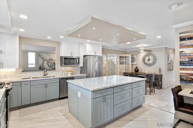 Contemporary Style/Beach Resort Living!  EVERY POSSIBLE UPGRADE is done on this home!  Primary Bath is meticulously designed w/Sophisticated Luxury in mind!  Primary Bedroom has Grand Walk-In Closet w/Custom Shelving!  HUGE Kitchen Island with Solid Stone Countertops! ALL Cabinetry has Soft Close Drawers AND Doors! Custom Built-In Creative Storage is EVERYWHERE! Home is situated between two Lakes w/Expansive Green Belt Views for peaceful living!  ** NO PROPERTY TAXES**  Location is a 15 minute walk to South Carlsbad State Beach! LARGE strip mall offers EVERY POSSIBLE amenity from shopping to services all just a walk across the street! Lakeshore Gardens has a multitude of community areas that are upscale, assessible and beautiful!
